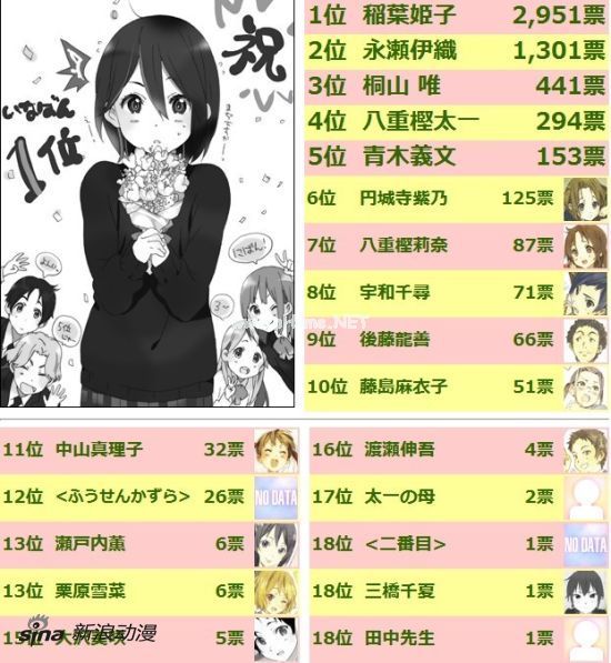 此前为了纪念动画化而召开的《恋爱随意链接》官方版角色人气投票活动,现在终于公开了投票结果。最终,经过5625张投票的选择,在动画中由泽城美雪配音的稻叶姬子以2951票的高得票数获得第一,更可怕的是得票率达到了52.5%。