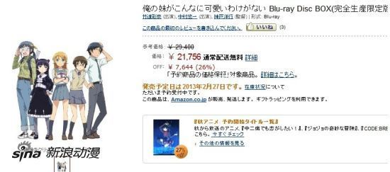 已经宣布第二期制作决定,第一期的再编成版正在重播中的人气动画《我的妹妹不可能这样可爱》,现在又宣布将推出第一期的BDBOX,定价29400日元,目前已在日本Amazon以21756的折后价格开始接受预约。
