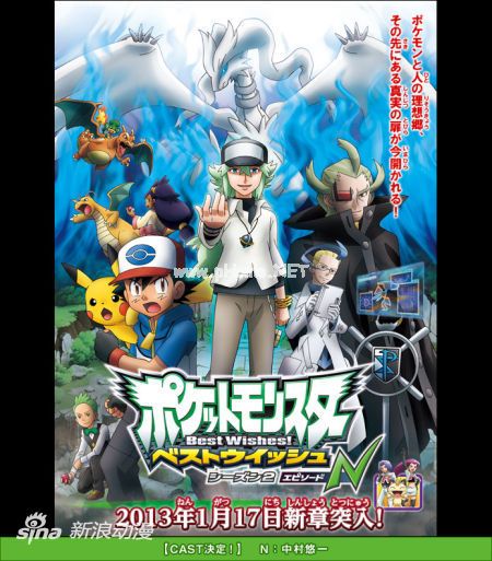 目前正在东京电视台系放送的TV动画《口袋妖怪 Best Wishes! 2》,即将开启备受期待的新章《口袋妖怪BW2 Episode N》[/url],现在新章的更多情报已经解禁,预定将从2013年1月17日起放送,N的声优则将由代表角色有《CLANNAD》冈崎朋也、《冰菓》折木奉太郎的中村悠一担当。