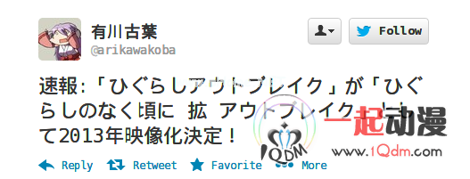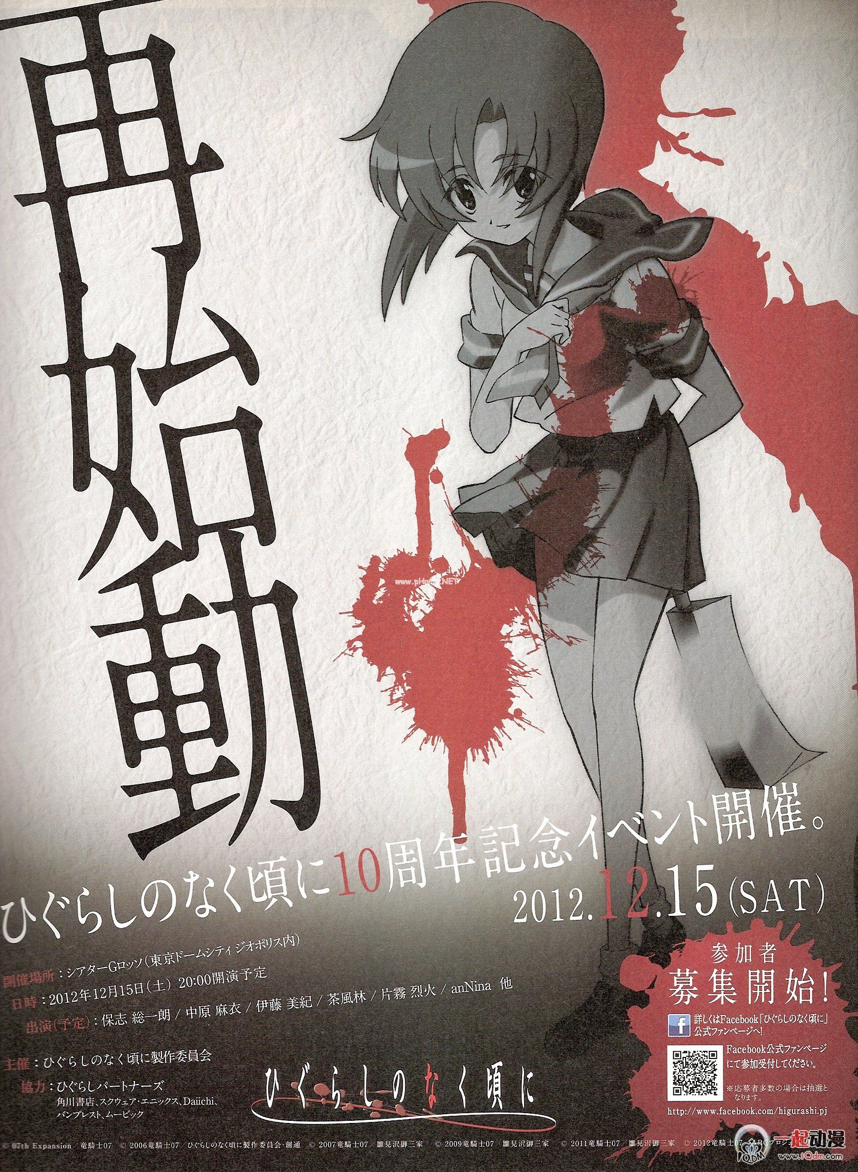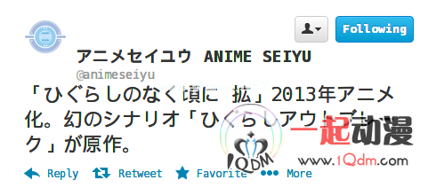 「ひぐらしのなく頃に」已经四度动画化,两次TV版,两次OVA版。在今天举行的《寒蝉鸣泣之时》10周年粉丝见面会上,官方宣布了「ひぐらしのなく頃に 拡」将要在明年动画化的消息,剧情为「ひぐらしアウトブレ-ク」(寒蝉outbreak?)改编,不过具体是TV版还是OVA版还是剧场版还未确定。