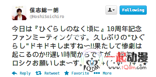 前原圭一的声优保志总一朗也更新了Twitter