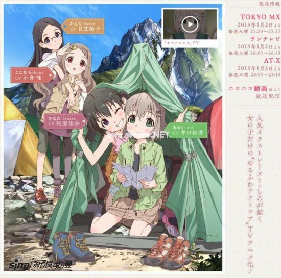 预定将从1月2日25:30起在TOKYO MX放送的5分钟泡面番《向山进发》(登山少女、山野建议、ヤマノススメ)日前在NICONICO动画公开先行PV。同时本作主题歌确认将由剧中声优井口裕香和阿澄佳奈演唱。